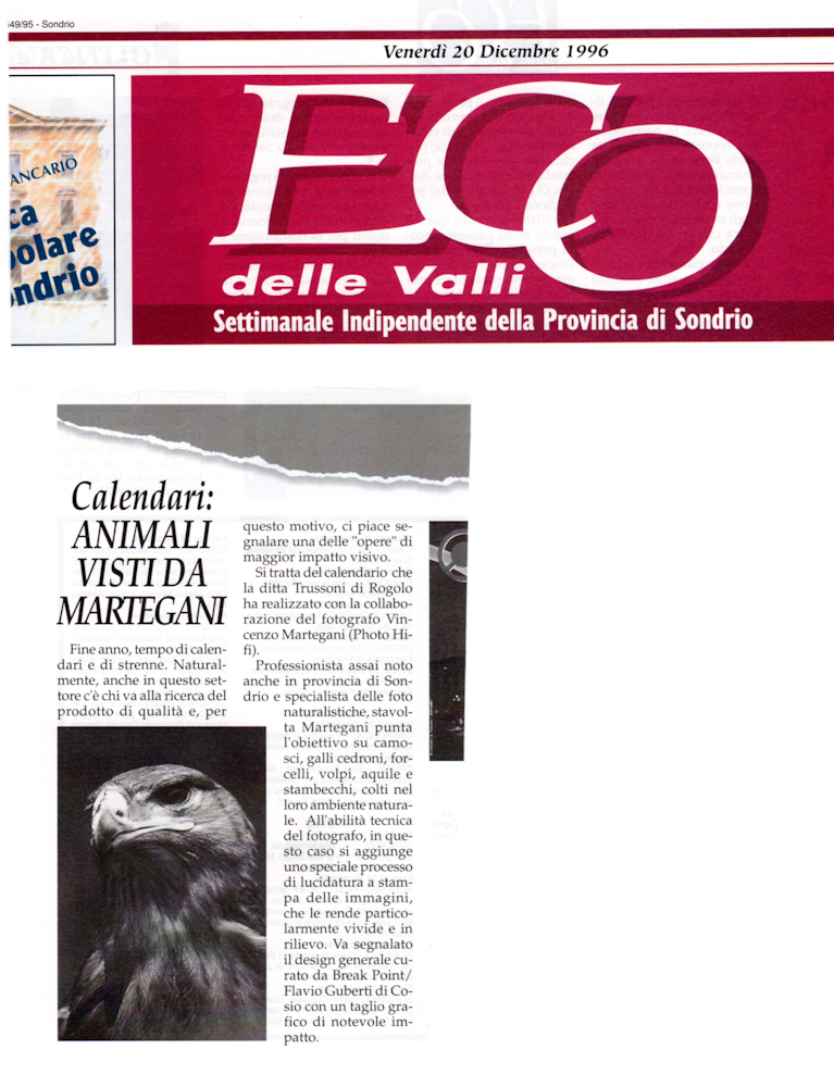 ECO DELLE VALLI CALENDARI ANIMALI VISTI DA MARTEGANI 20 dicembre 1996