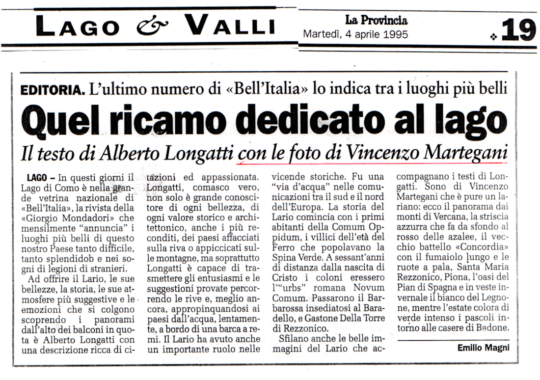LA PROVINCIA DI SONDRIO QUEL RICAMO DEDICATO AL LAGO 4 aprile 1995