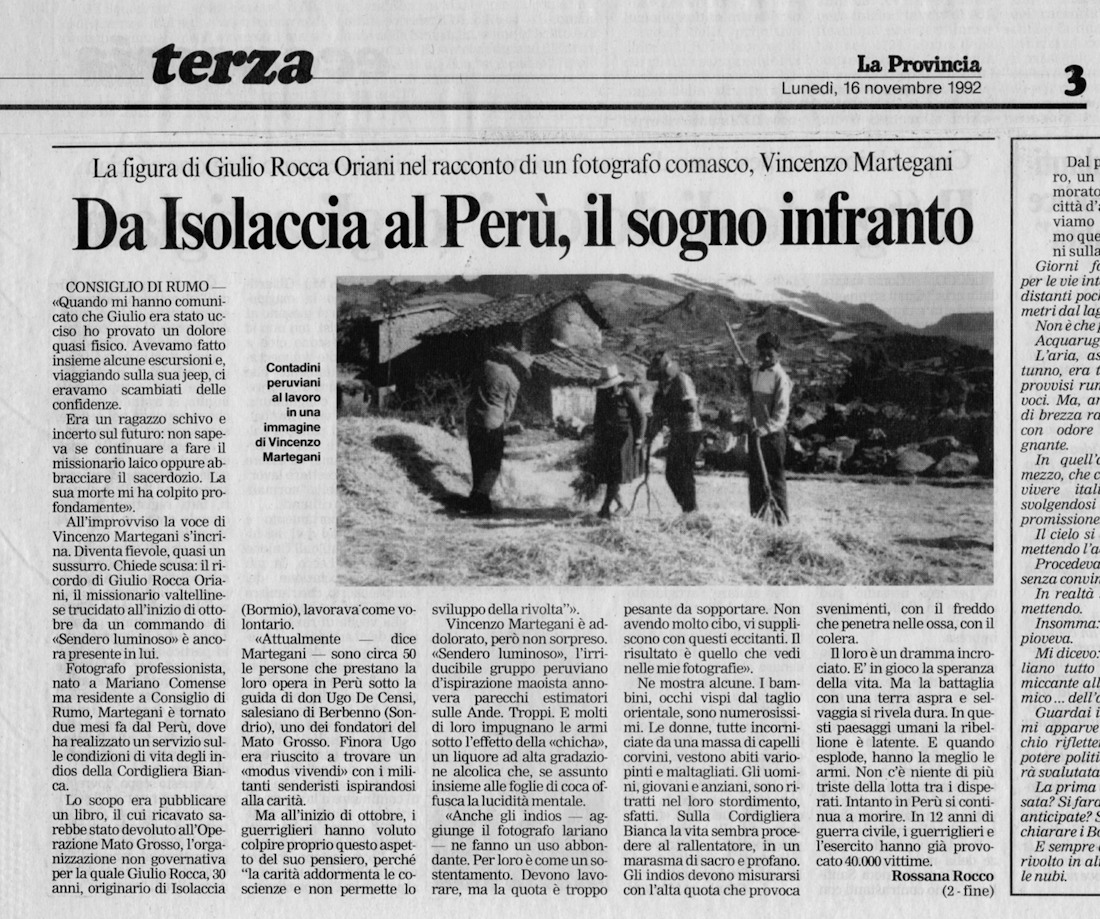 LA PROVINCIA DI SONDRIO DA ISOLACCIA AL PERU IL SOGNO INFRANTO 2 novembre 1992